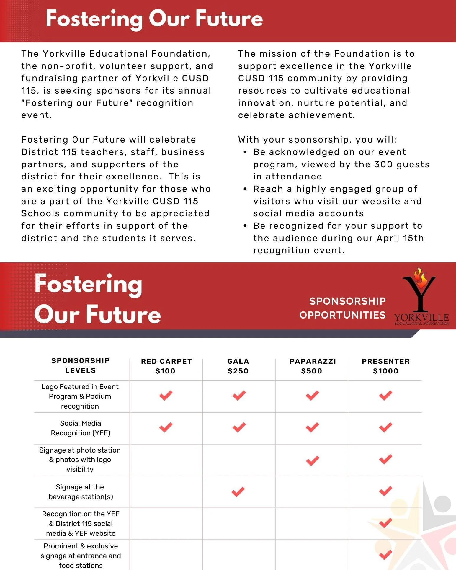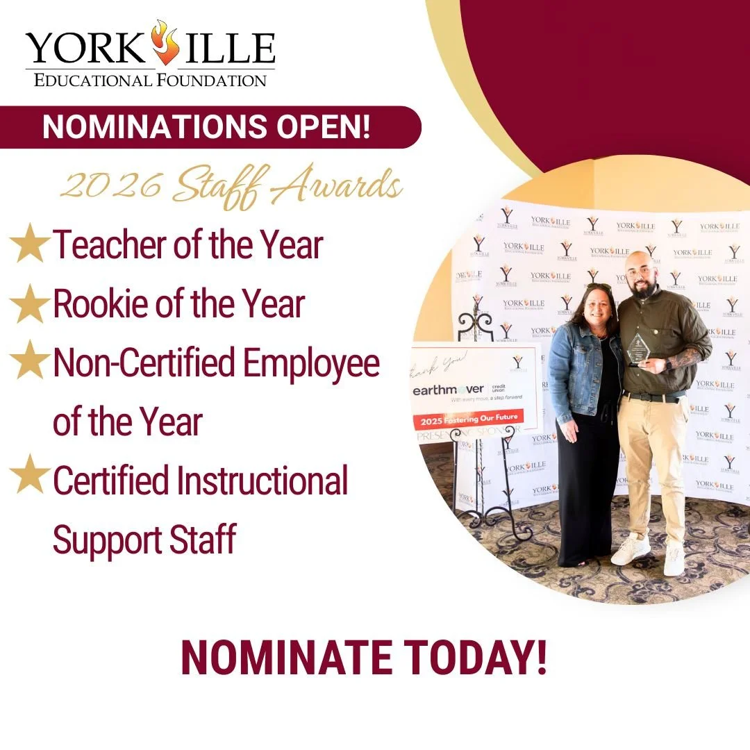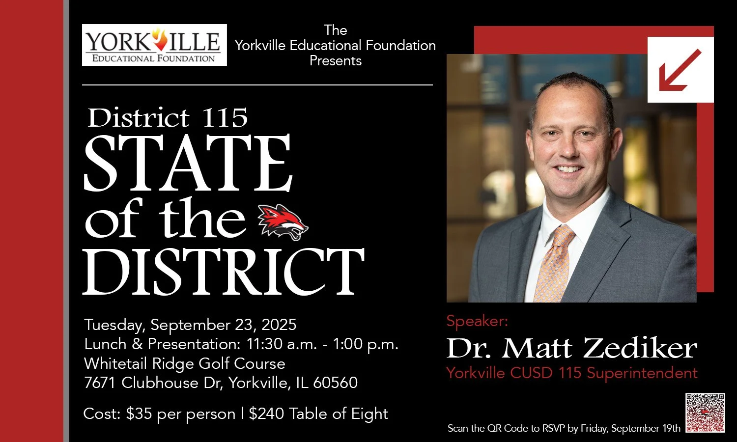 Together we make a difference. Yorkville Educational Foundation, the non-profit fundraising arm of Yorkville CUSD 115, connects students, teachers, and the community to provide innovative, real-world learning opportunities and ensure teachers have an opportunity to implement programs that provide engaging, meaningful classroom experiences. The Foundation creates relationships with local businesses, organizations, and community members to fund opportunities outside of the district tax-supported budget.